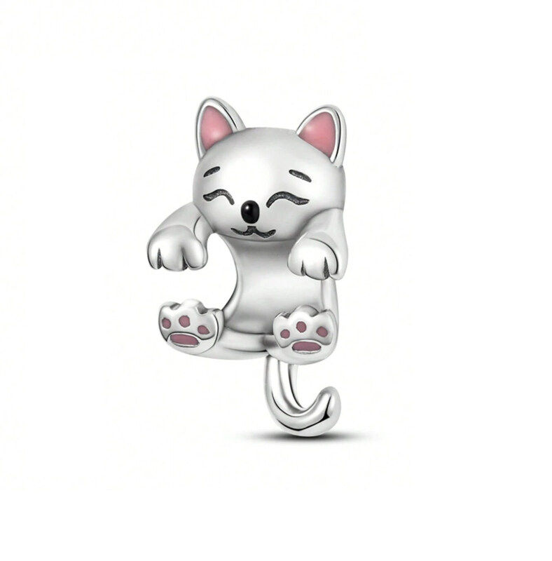 Срібна намистина "Білий котик"