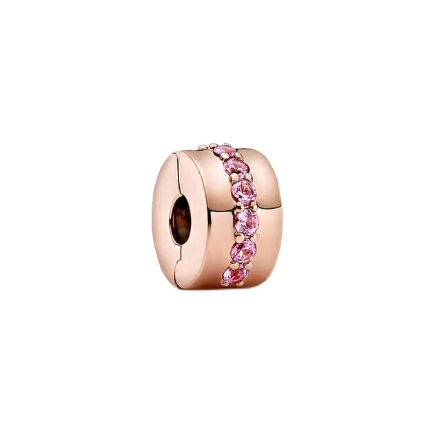 Срібна намистина-кліпса "У позолоті з рожевими камінцями"