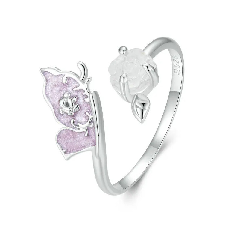 Срібна каблучка "Метелик та квітка"