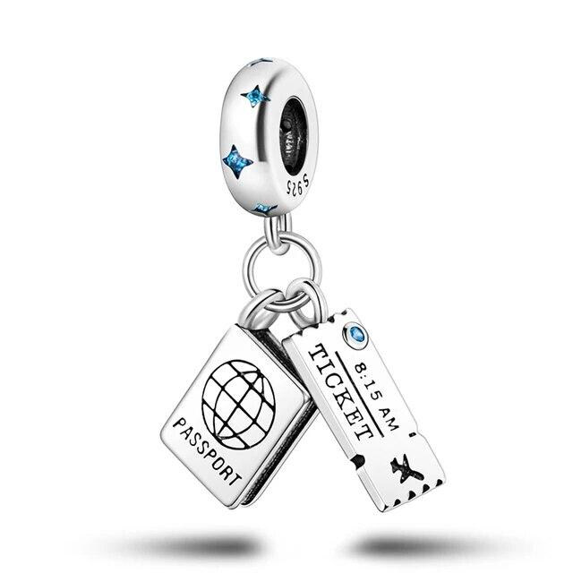 Срібна намистина-підвіска "Квиток та паспорт"