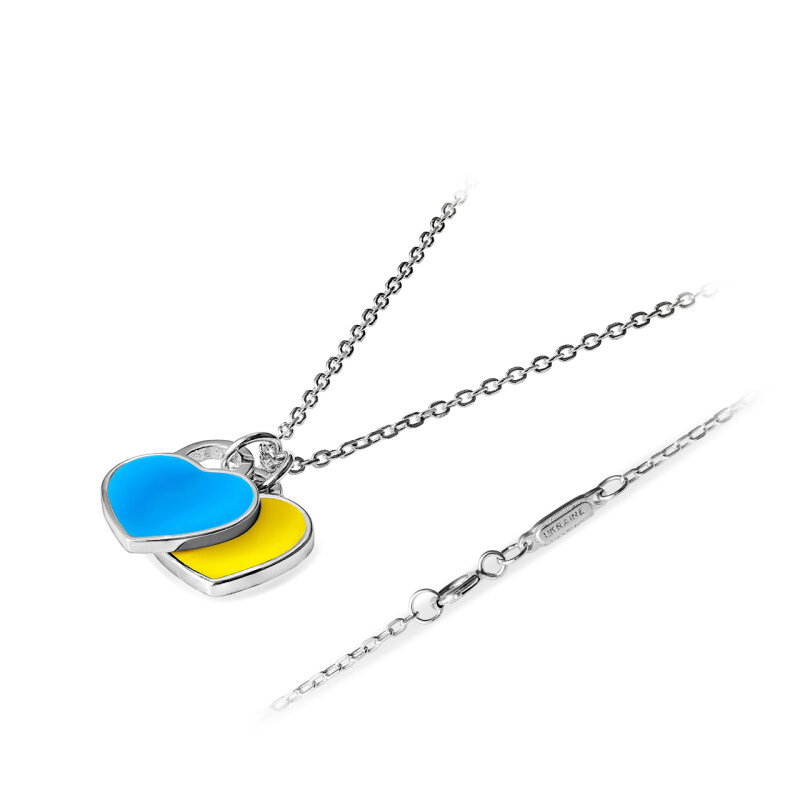 Унікальне намисто "З Україною в серці" виготовлене зі срібла 925 проби та вставки з жовто-блакитної емалі.