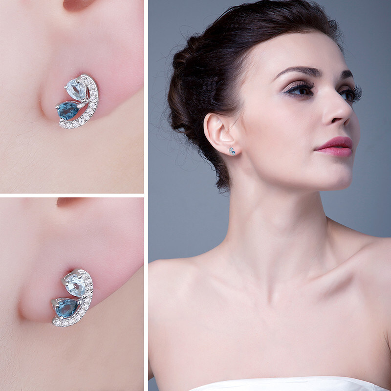 Срібні сережки з блакитним топазом