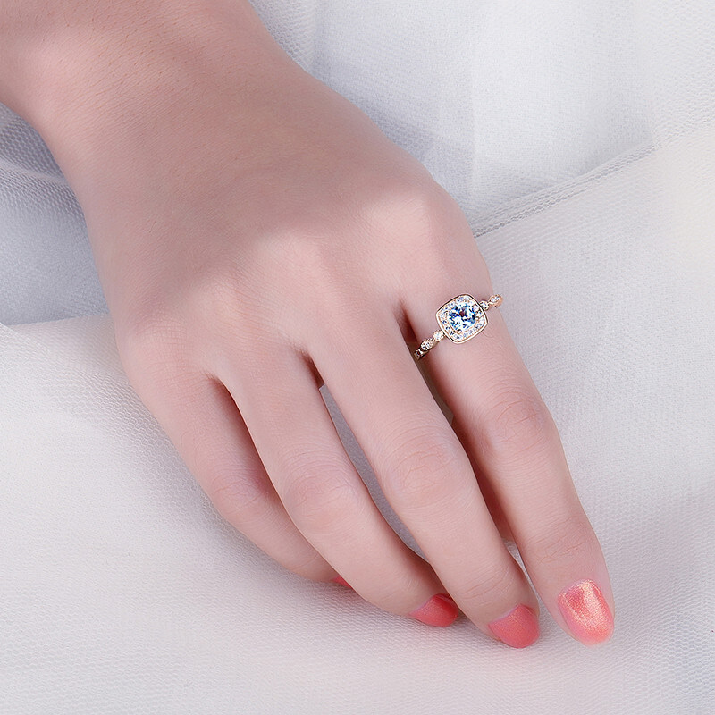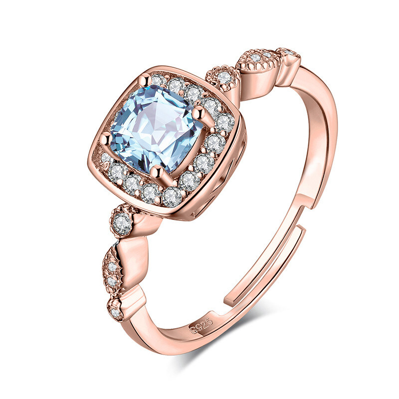Срібна каблучка з блакитним топазом з рожевою позолотою