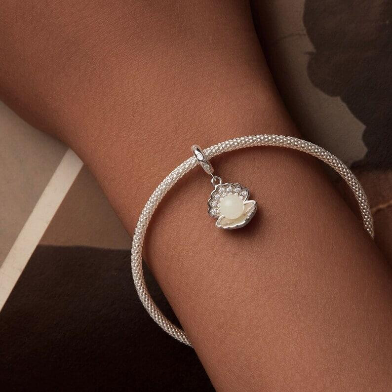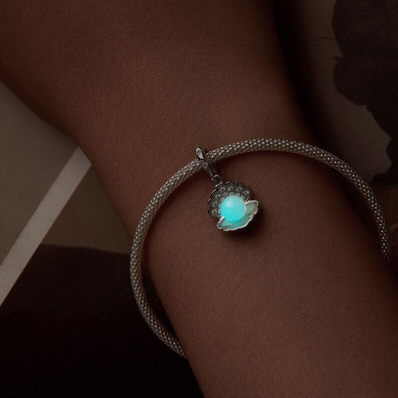 Срібна намистина "Мушля, що світиться"