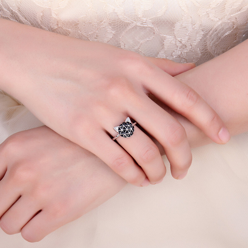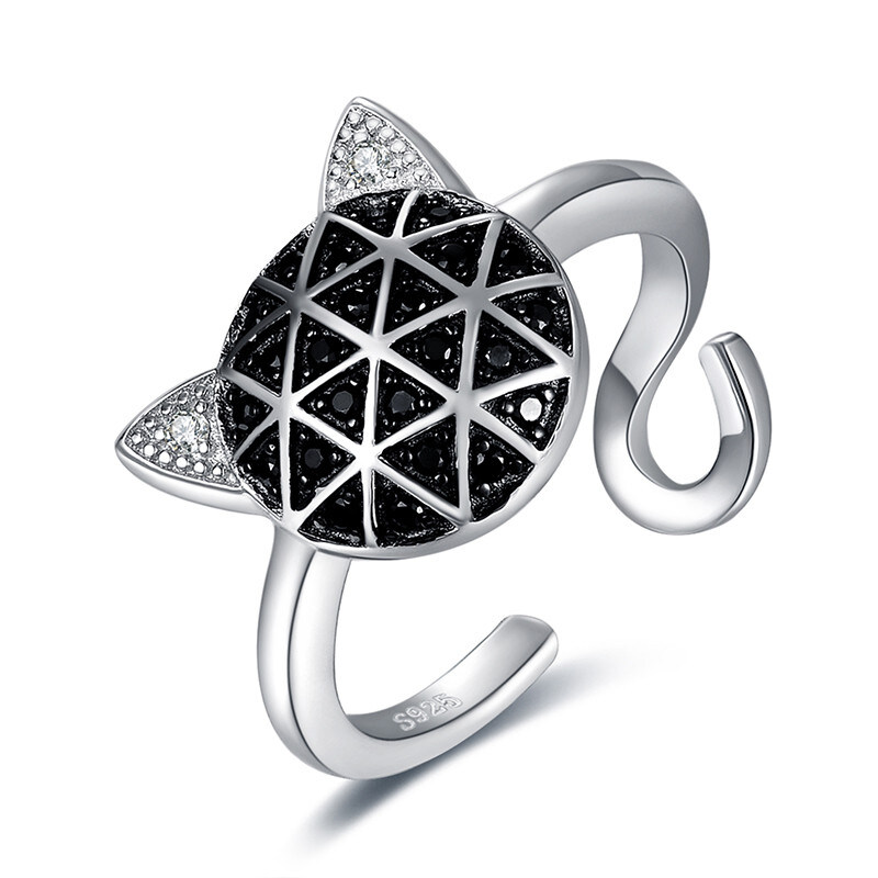 Срібна каблучка "Котик" із вставками чорного шпінелю