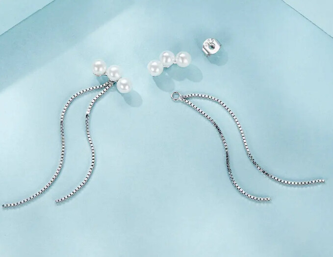 Срібні сережки "Перлинне тріо"