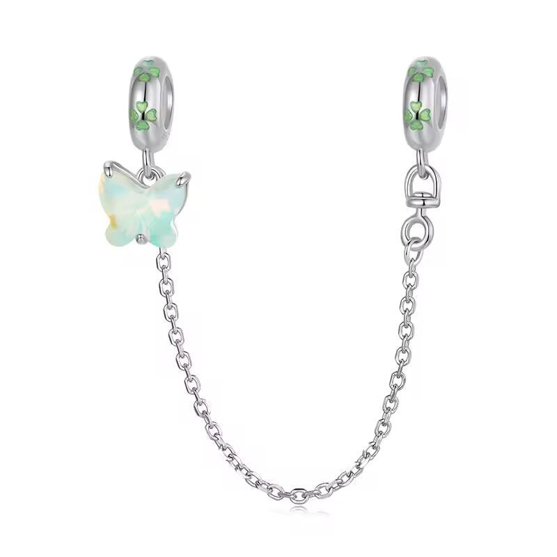 Срібний захисний лланцюжок "Зелений метелик"