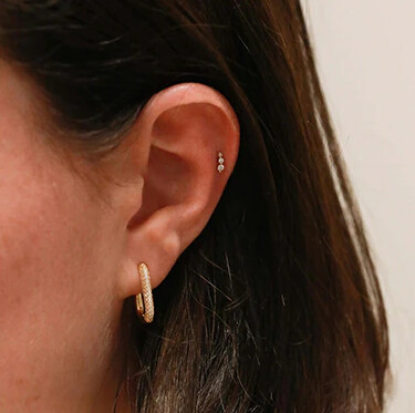 Срібна сережка в позолоті з камінчиками