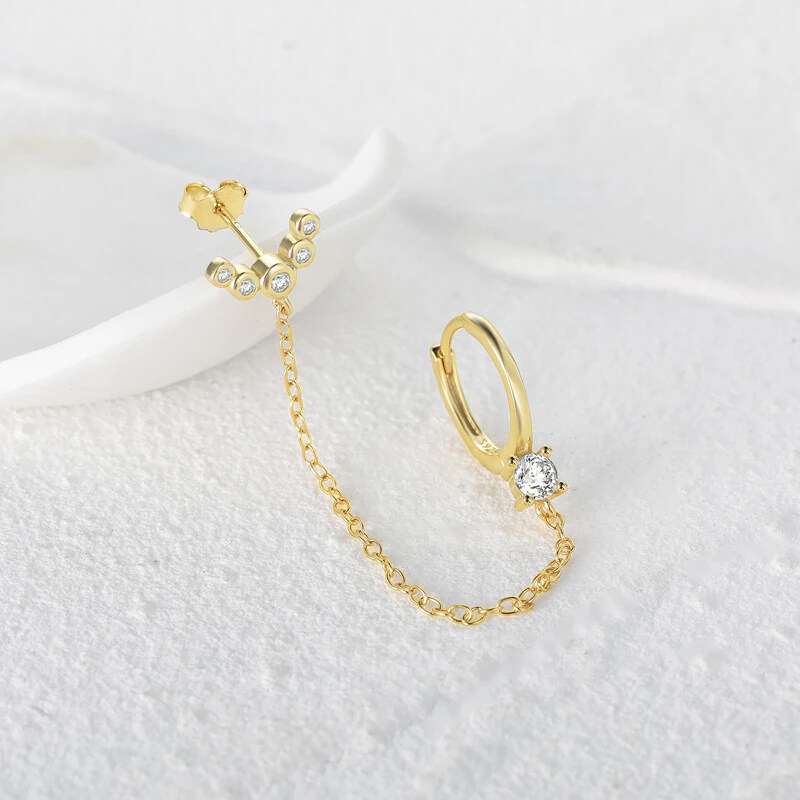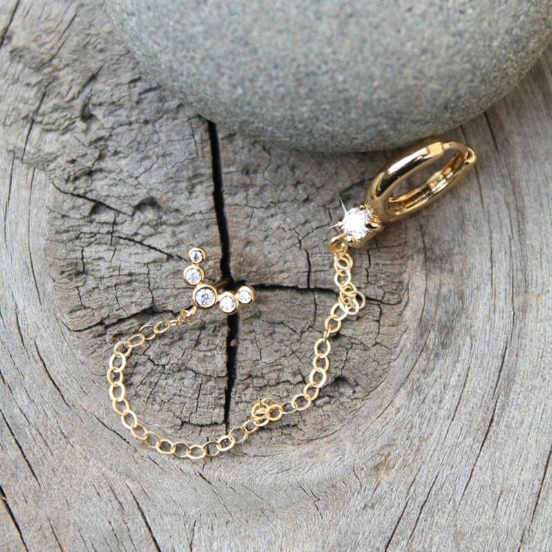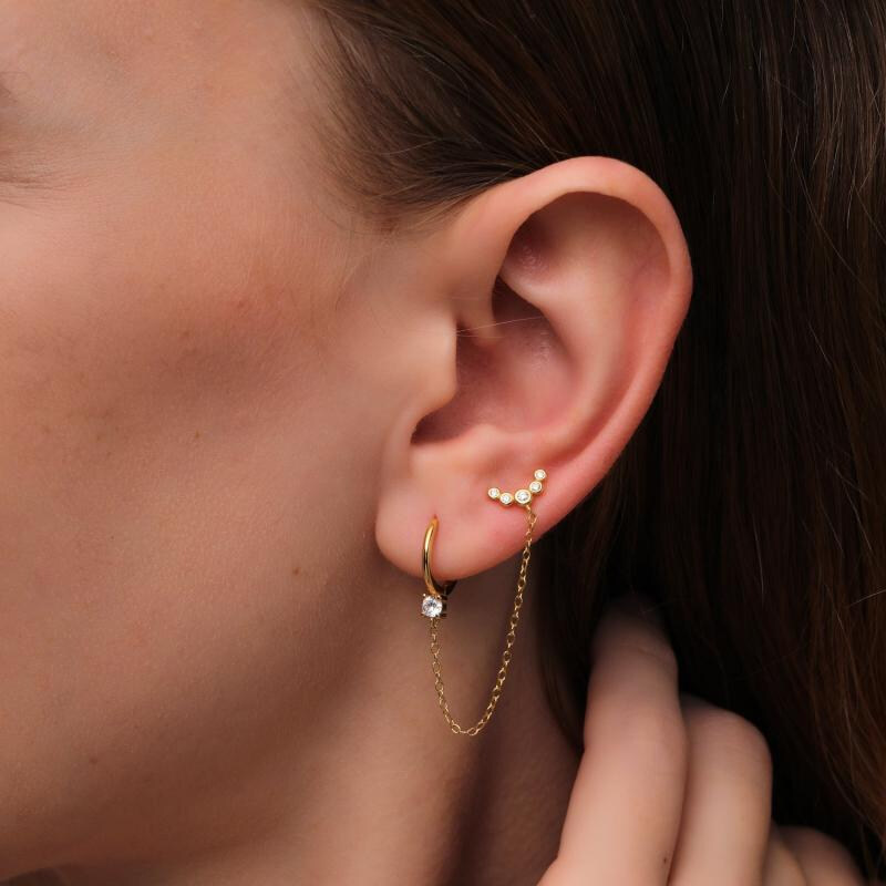 Срібна сережка в позолоті з камінчиками
