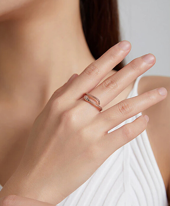 Срібна каблучка "Змія" в рожевій позолоті