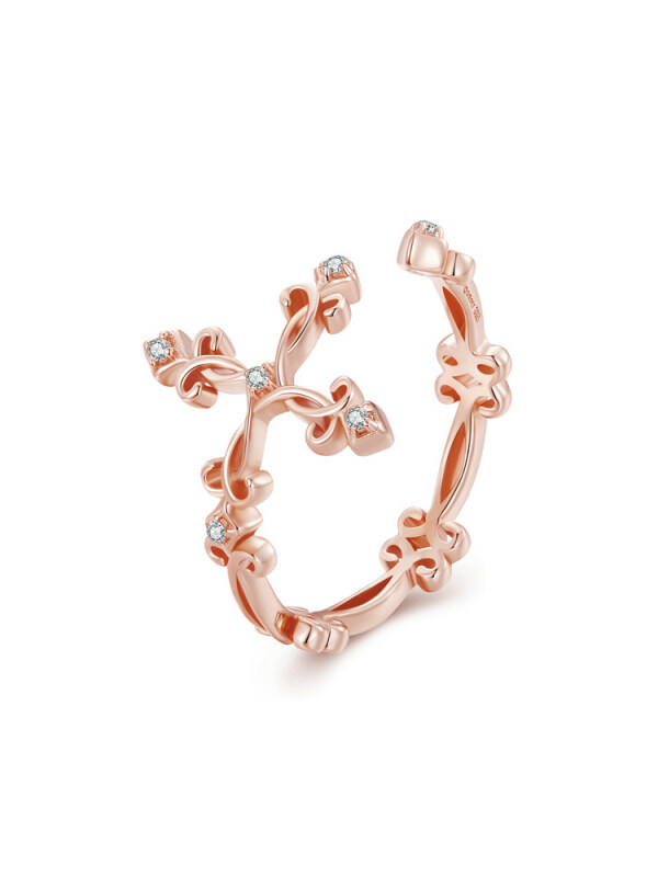 Срібна каблучка "Хрест" в рожевій позолоті