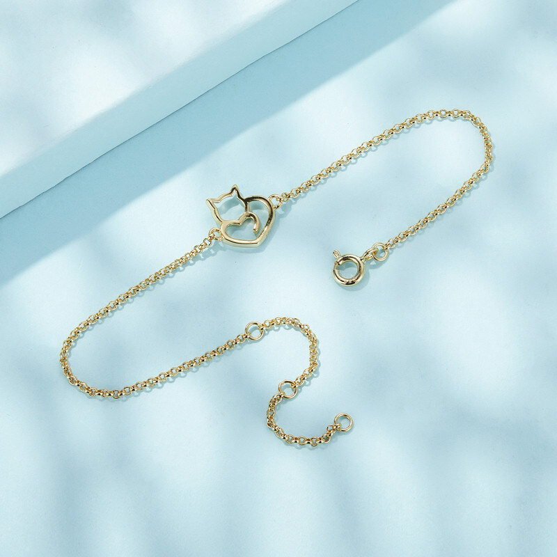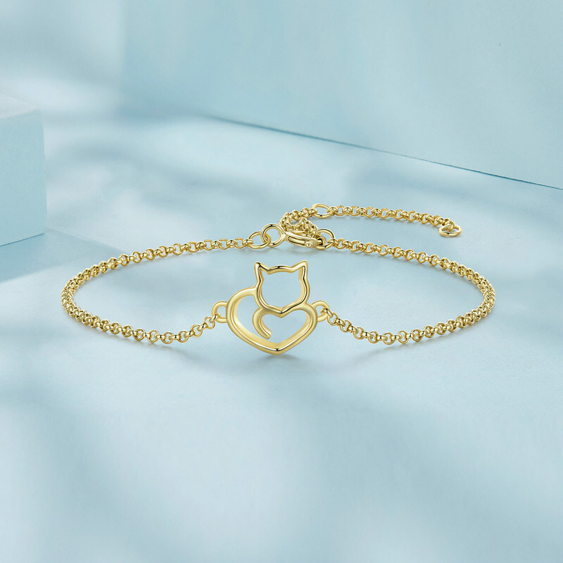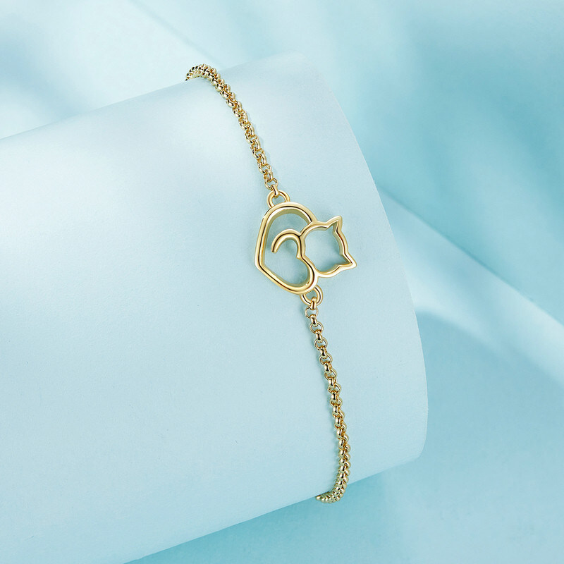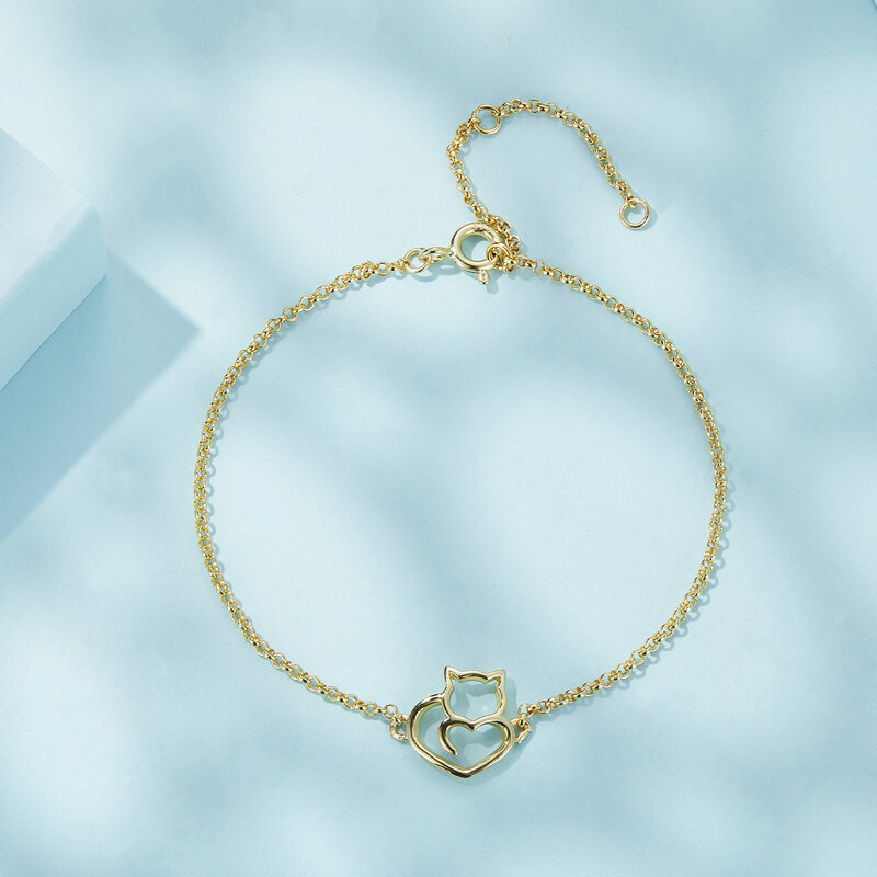 Срібний регульований браслет "Котик" в позолоті