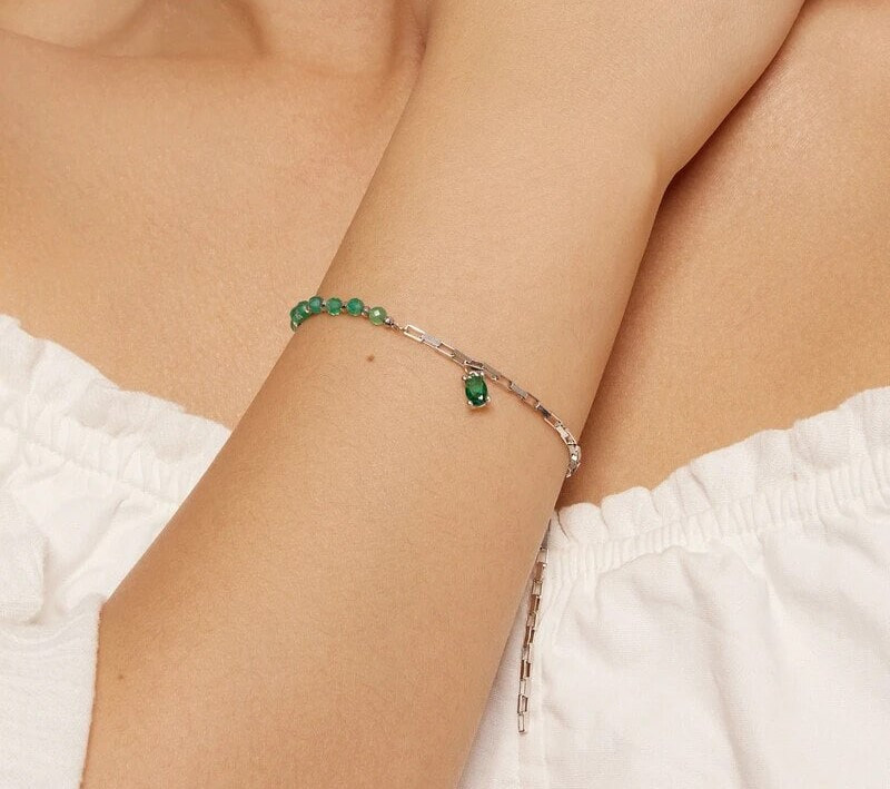 Регульований срібний браслет з бусинами