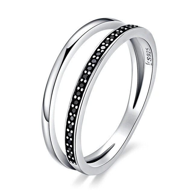 Подвійна срібна каблучка зі вставками кубічного цирконію