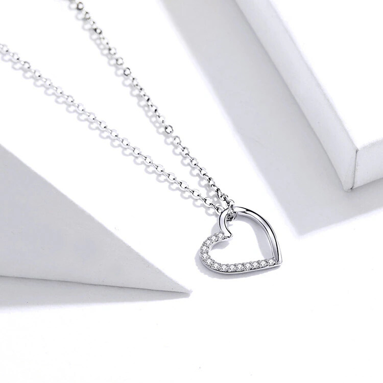 Срібне намисто у формі серця з кубічним цирконієм