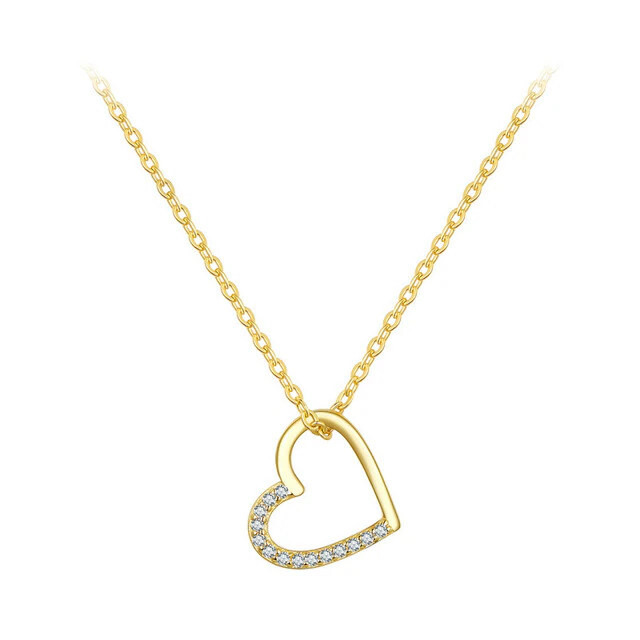 Срібне намисто у формі серця з кубічним цирконієм в позолоті