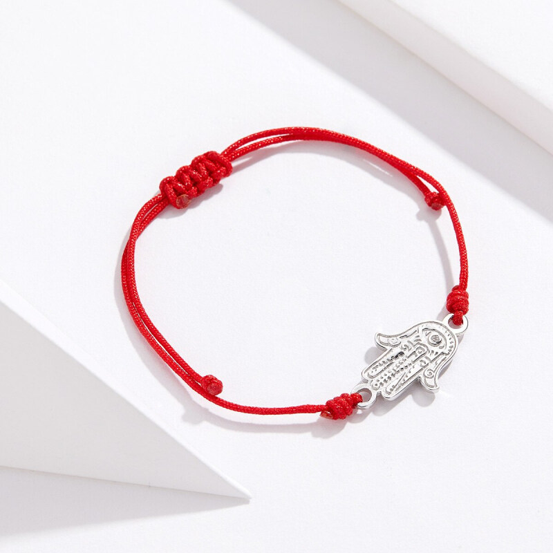 Регульований плетений браслет із хамсою у сріблі