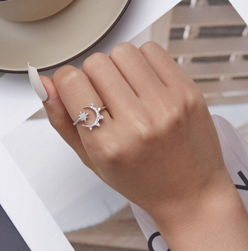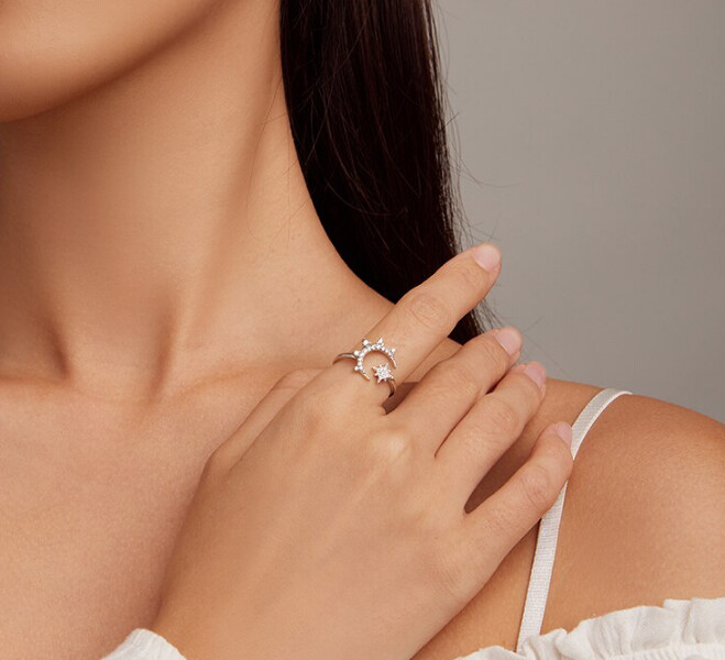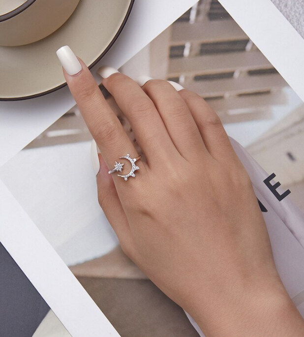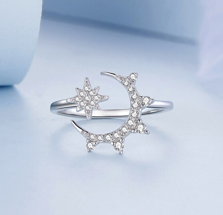 Срібна каблучка "Місяць та зірка"