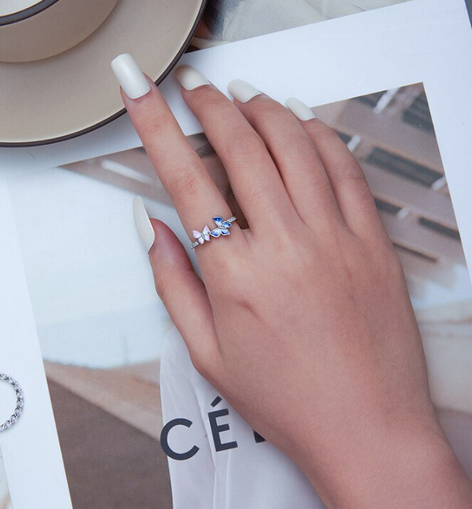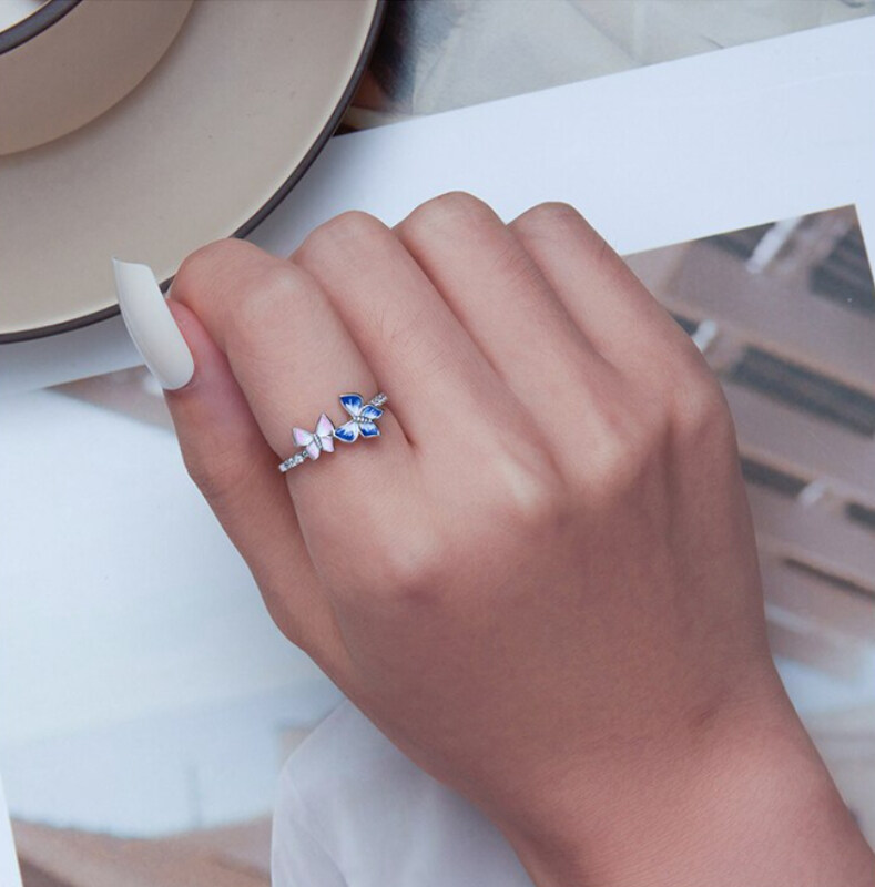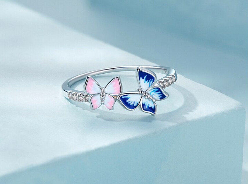 Срібна каблучка "Метелики"