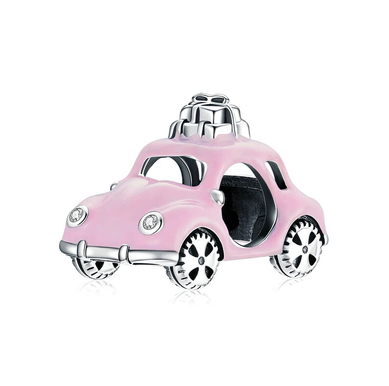 Серебряный шарм "Розовая машина с подарками"